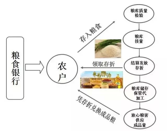 農(nóng)民打下新糧,存入企業(yè)提供的糧倉,定期或活期自由選擇,并且享有利息,這個糧倉就作為“糧食銀行”為農(nóng)戶提供代存代儲代加工糧食等服務(wù),糧食銀行會給農(nóng)戶發(fā)放 “糧食存折”,記錄著存糧日期、數(shù)量、取兌日期和余額等信息。農(nóng)戶還可憑存折在鄉(xiāng)村各個網(wǎng)點(diǎn)兌換米、油或化肥、種子、農(nóng)藥等各種農(nóng)資。農(nóng)戶走進(jìn)糧食銀行,就好像走進(jìn)了商業(yè)銀行的儲蓄所,只不過存取的內(nèi)容從現(xiàn)金變成了糧食。